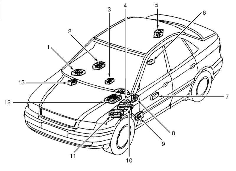 Расположение основных электрических элементов в кузове